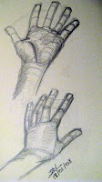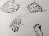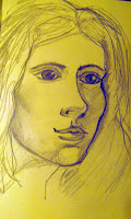 Era giro ver surgir feicoes e expressoes com simples tracos, riscos e pontos. Mas ate que ponto seria igualmente divertido ver nascer figuras?! Foi o que tentei descobrir sob o olhar atento da Mestre. Das maos aos bracos... sem esquecer as regras basicas... e na construcao do corpo humano ha que ter em atencao as 7,5 cabecas para uns, 8 para outros, para haver o equilibrio e proporcao correctas na construcao do boneco...